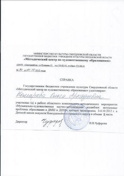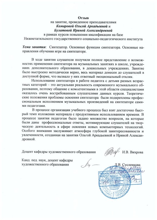 | Отзыв на занятие, проведенное преподавателями Комаровой Ольгой Аркадьевной и Булатовой Ириной Александровной в рамках курсов повышения квалификации на базе Нижнетагильского государственного социально-педагогического института |